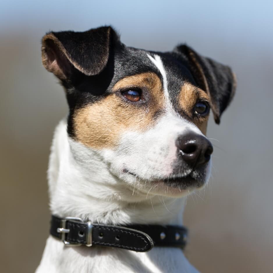 Farver: Hvid, Hvid med få aftegninger. Jack Russel Terrieren er skabt til rævejagt, hvilket den er super effektiv til. Den har et højt energiniveau og kræver meget motion og beskæftigelse. Jack Russel Terrieren kræver en fornuftig og konsekvent opdragelse, for at kunne fungere i en familie.