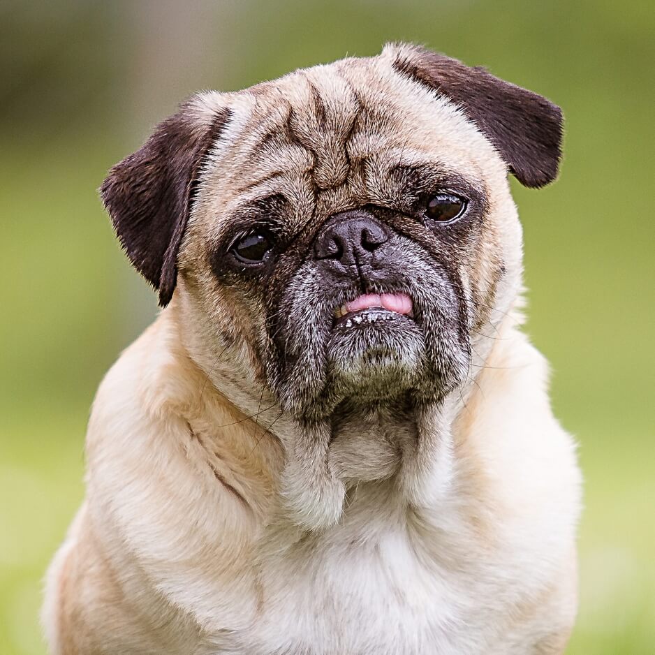 Farver: fawn, abricot, sort, i sjældne tilfælde Silver, med sort maske og ører, en sort ål(stribe) ned ad ryggen. Mopser er sociale, legesyge, intelligente og charmerende små hunde. Mops kan have en tendens til at snorke.