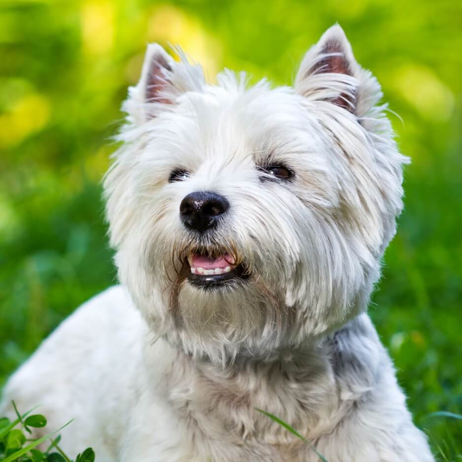 Farver: Hvid West highland white terrieren menes at være fremavlet som en hvid jagtterrier, der var lettere at skelne fra byttet end de mørkere typer.