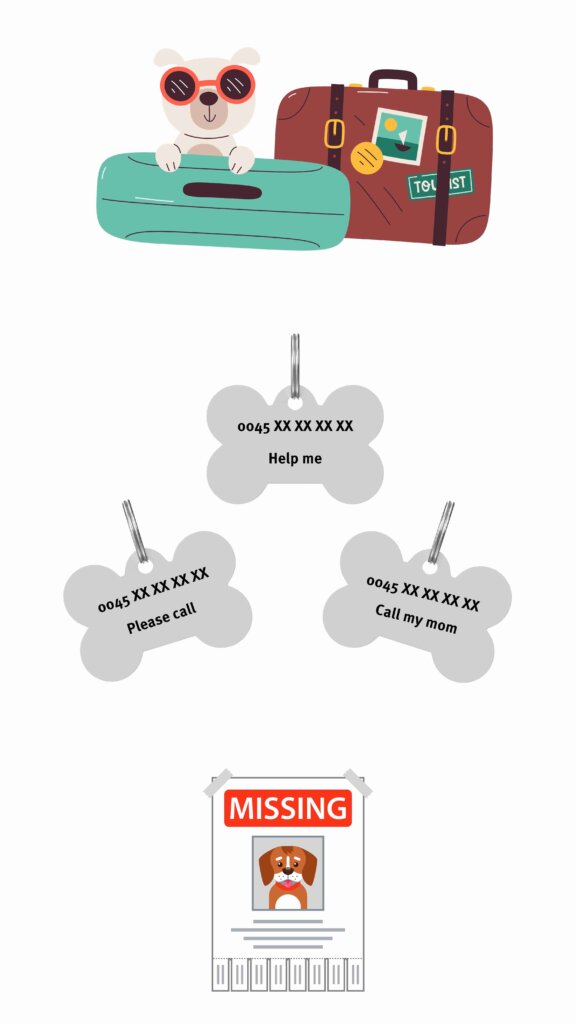 Skulle dine værste tanker blive til virkelighed og din hund løber væk er du sikret, at dit feriehundetegn gør, at personen finder din hund har mulighed for at ringe dig op problemfrit, så du kan blive genforenet med din bedste ven.