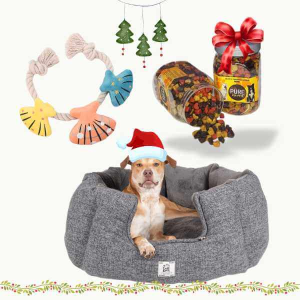 Fra pelsplejeprodukter til legetøj og snacks – vi har, hvad du skal bruge for at gøre hunden glad i julen.