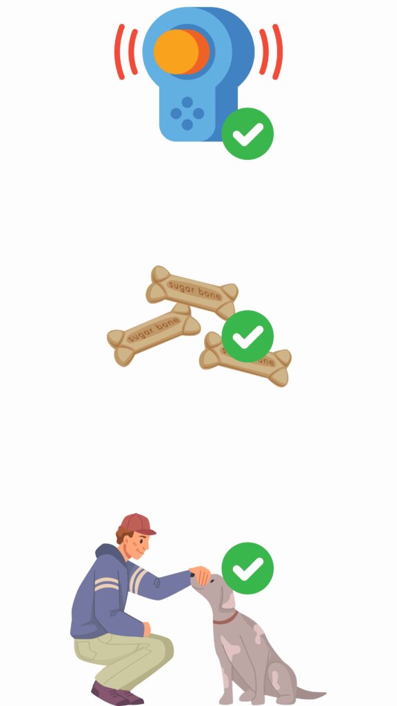 Ved at bruge klikkeren kan du belønne din hund hurtigt og præcist. Godbidden skal altid gives når du klikker og helst inden for 3 sekunder. Klikker du ved en fejl, skal du stadig belønne hunden.