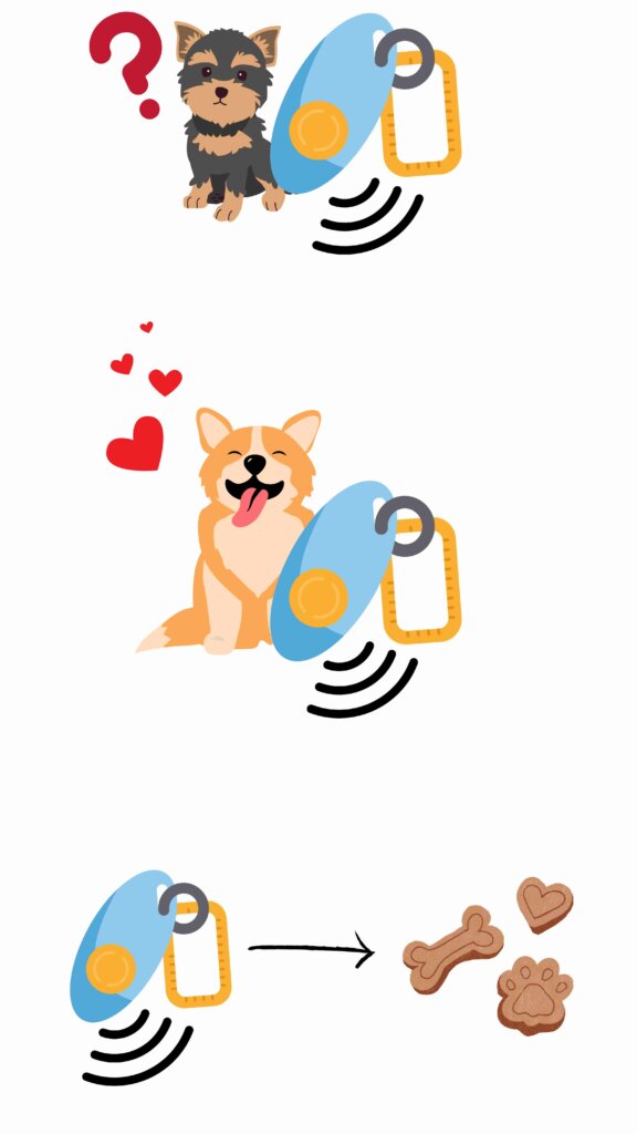 Klikkertræning er en enkel måde for hunden at finde ud af at den gør det rigtige. Det sker, fordi klikket er en ensartet lyd, som du lærer hunden betyder, at den gør den korrekte adfærd. Når hunden hører klikket giver du samtidig hunden en godbid og derfor lærer hunden at associere klikket med belønning, som også kaldes positiv forstærkning.