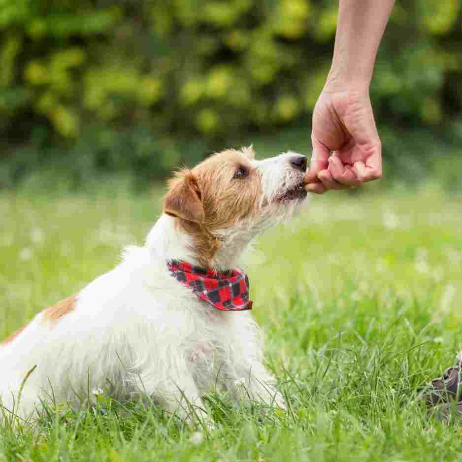 • Du belønner hunden med godbid og siger “dygtiiig” eller lignende.