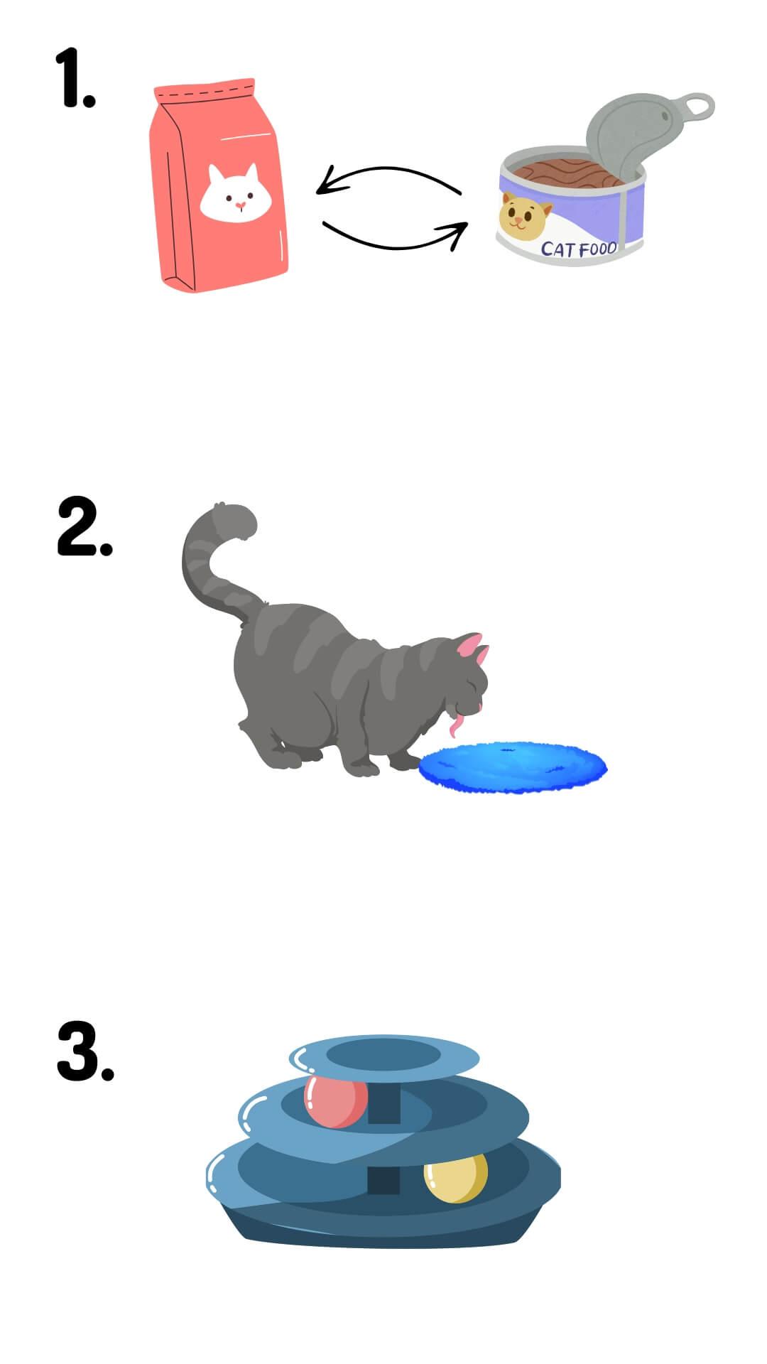 Skift mellem vådfoder og tørfoder samt forskellige typer aktiveringslegetøj. Dette holder måltiderne spændende og forhindrer, at katten mister interessen. Variationen hjælper med at stimulere kattens jagtinstinkt og sørger for, at den ikke keder sig.
